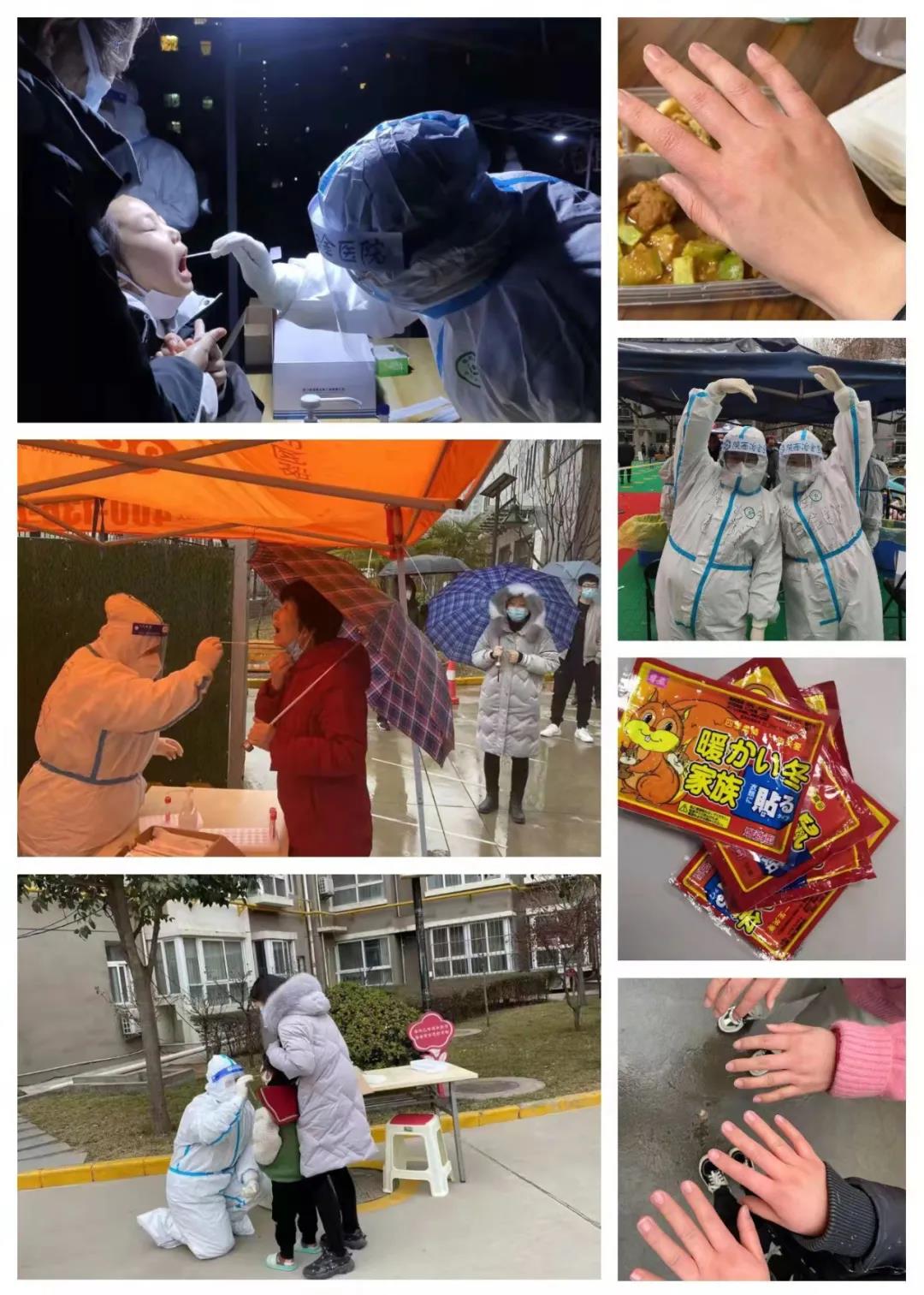一声令下,全民核酸检测开始,以往的培训考核起到了作用,我们医院派出大量的医务人员前往各个核酸采集点,隔离酒店进行防疫工作。一轮又一轮的核酸检测,一次又一次的酒精消毒双手,一身又一身的隔离衣穿了又脱,被安排在社区核酸采集点的我,穿着厚厚的衣服贴着社区给的暖宝宝再套着隔离衣,雪飘进了简易棚,双手不停的用酒精消毒后揉搓着,手真冷啊。其实更让人担心的是一部分不配合的居民,他们不愿意保持安全距离,不愿意戴口罩,随便插队,采集完咽拭子后重重的吐口痰在地上,社区的工作人员还有可爱的志愿者们努力地维持秩序,但是有时候还是要被一些人埋怨态度差,面对这种情况其实内心是有一点点“凄凉”的.但也有暖心的居民,采集完会跟我们道一声辛苦了,会送来暖宝宝,巧克力等物品,病毒无情,人间却有情,只要我们全城上下拧成一股绳,就没有翻不过的山,越不过的坎。