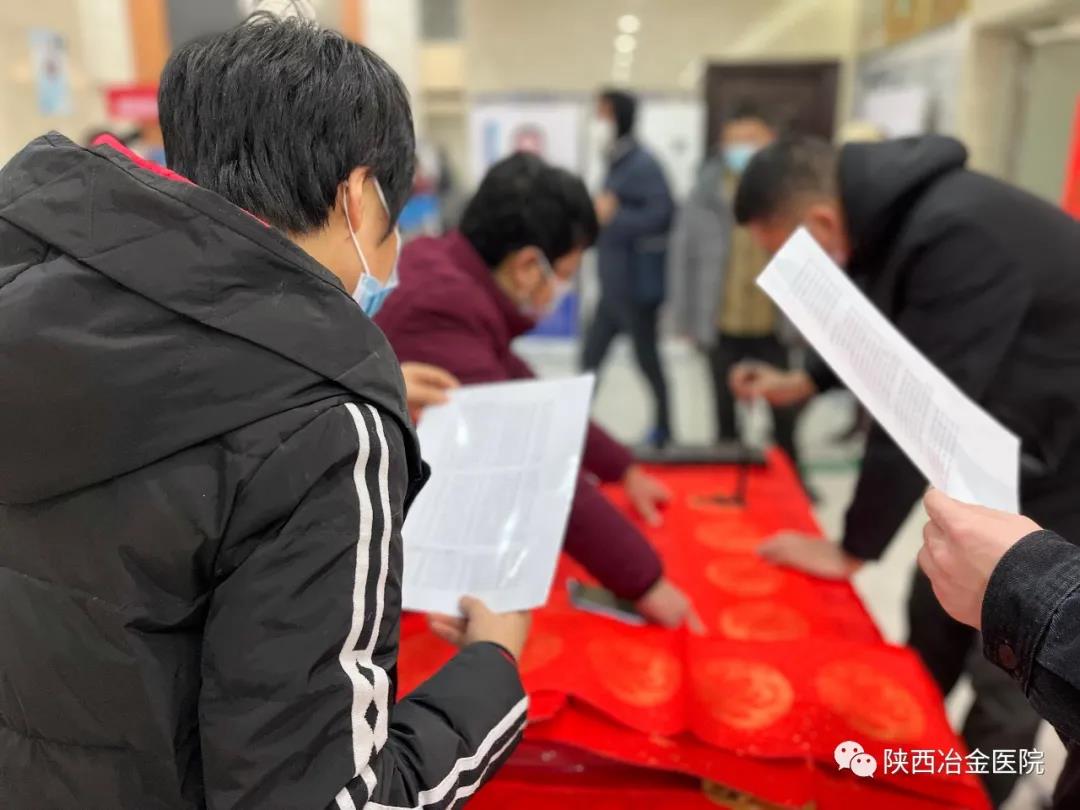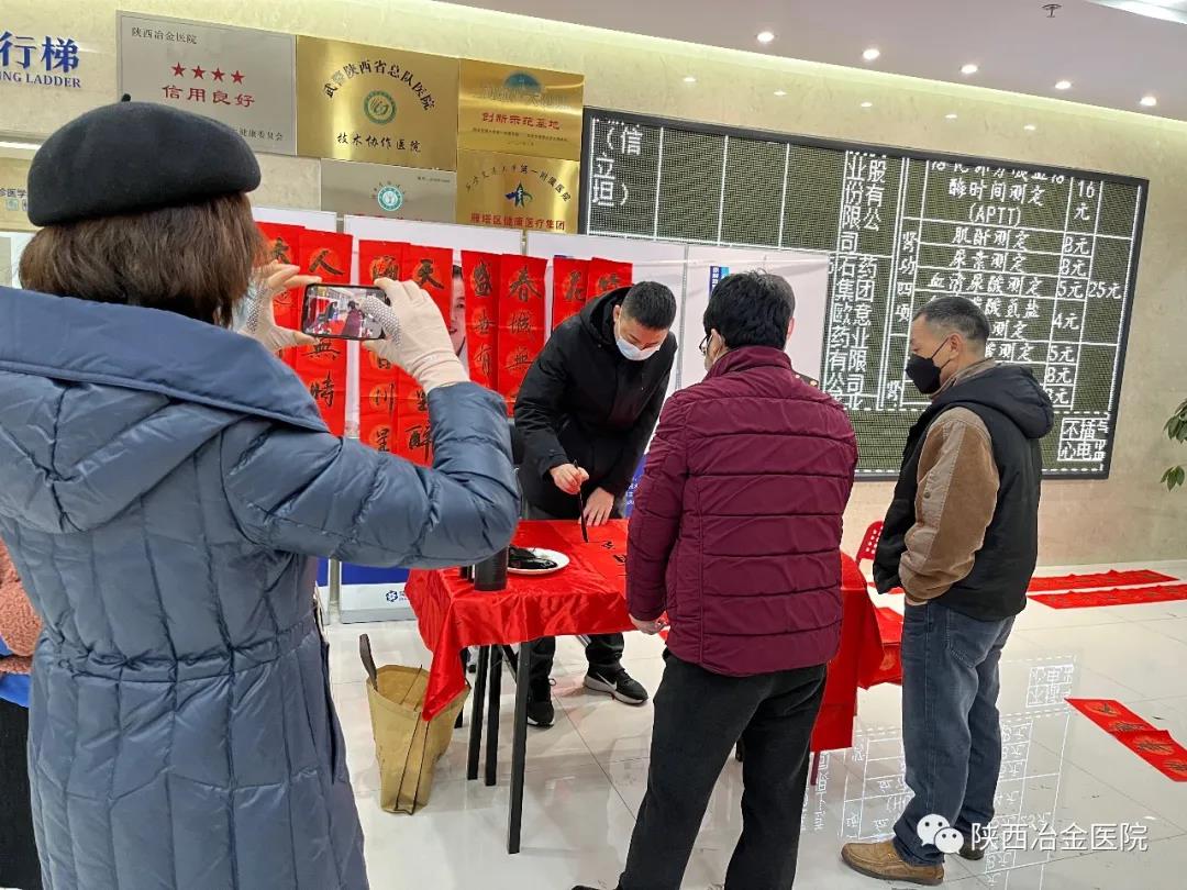 日前,陕西冶金医院特别邀请青年书法家、陕西书画研究院副院长孙强先生在医院一楼大厅举行“迎新春·送春联”活动,为社区居民书写春联,让大家在翰墨飘香中提前感受到浓浓的年味。