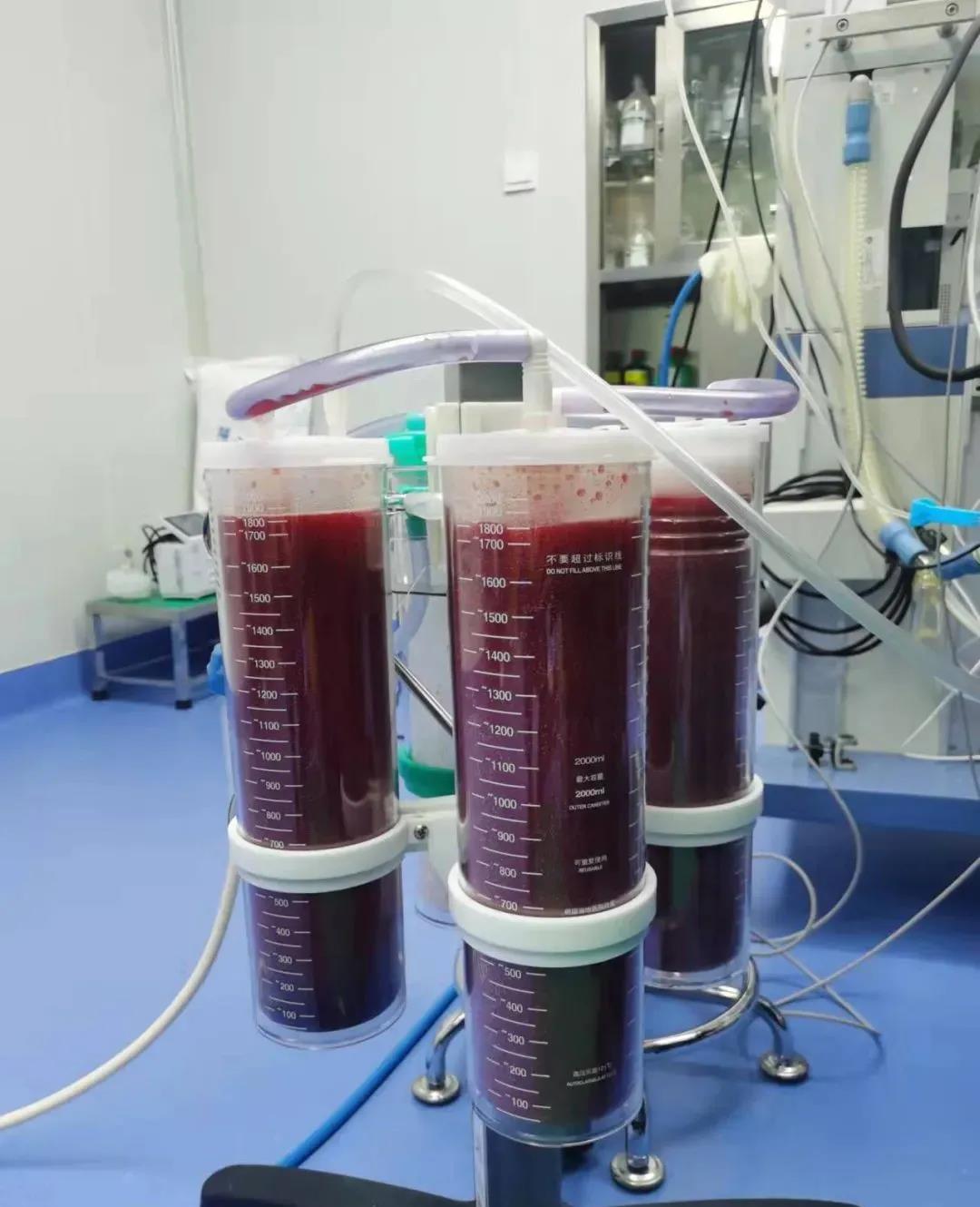 在探查手术中,医生发现腹腔大量积液,约1500ml,伴随凝固血块。网膜小肠重度挫裂伤,并可见网膜动脉破裂出血及小肠挫伤穿孔。