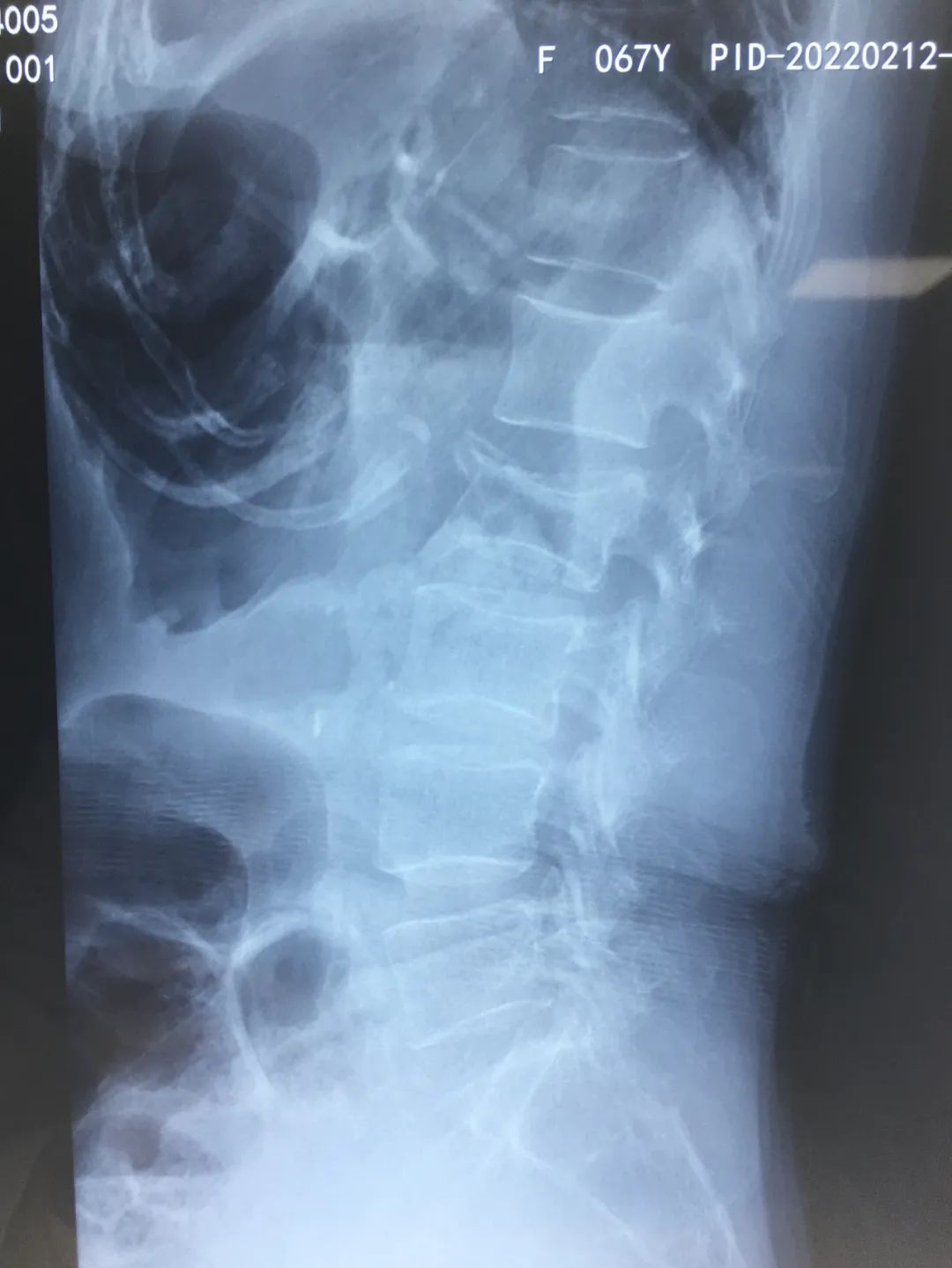 2月12日,家人将她送到陕西冶金医院就诊。医生完善相关检查,拍片提示:腰2椎体新近压缩性骨折,遂收住骨科。