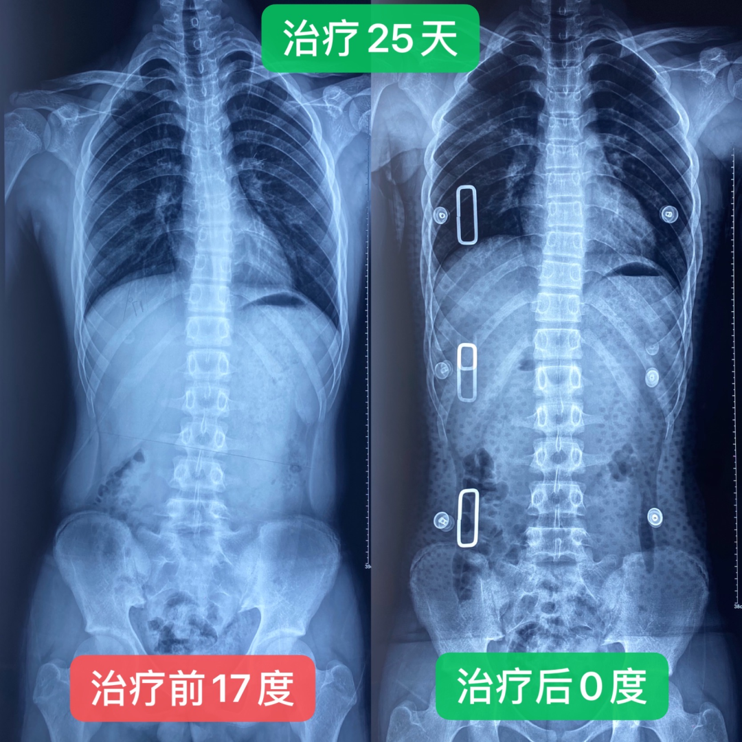 住院过程中最温暖人心的是彼此的信任和理解,所以飞飞经过不到1个月的治疗身体已经有了明显的改善,两侧腰背部平整度明显恢复,肌肉僵硬状态已好转,复查X线显示:脊柱基本居中,病情好转,予以出院。