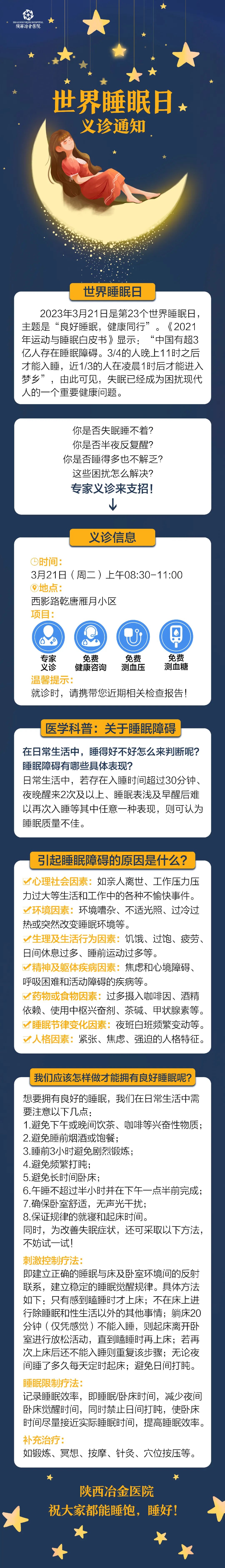 义诊通知丨你是否失眠睡不着、半夜反复醒?陕西冶金医院专家义诊来支招!