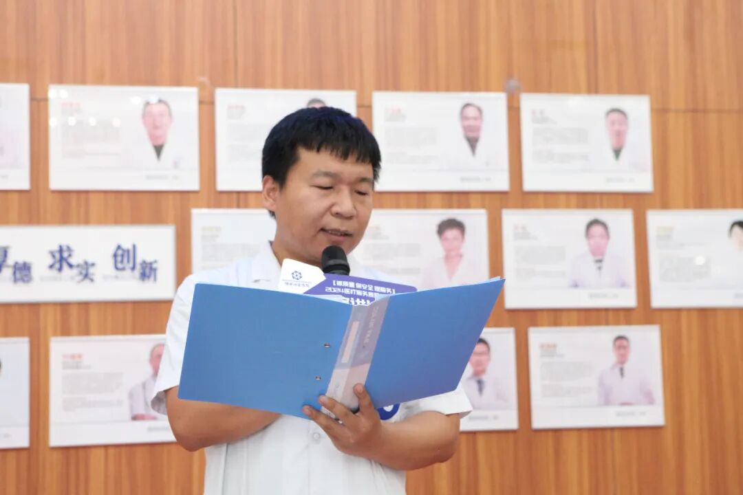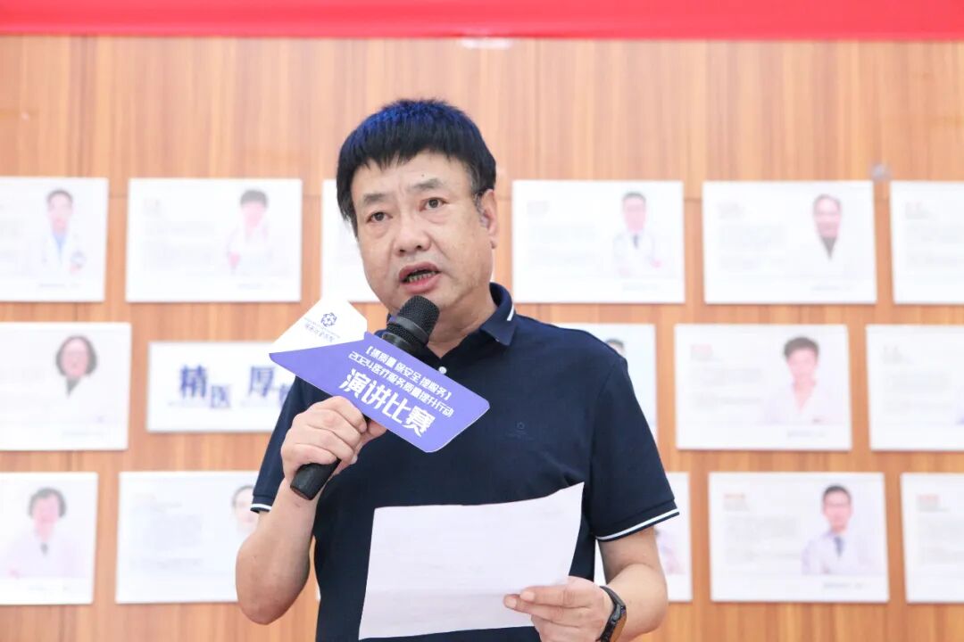 副院长陈建军在开场致辞中强调,医疗服务质量对于医院发展和患者满意度的重要性,并对医院过去一段时间在医疗质量服务质量提升的工作进行了简要回顾。他提到,自医院2024医疗服务质量提升行动启动以来,我们秉承“以患者为中心”的服务理念,致力于提升医疗质量,优化服务流程,强化医疗安全,提高患者满意度。通过全院上下的共同努力,我们取得了一系列令人鼓舞的成果。
