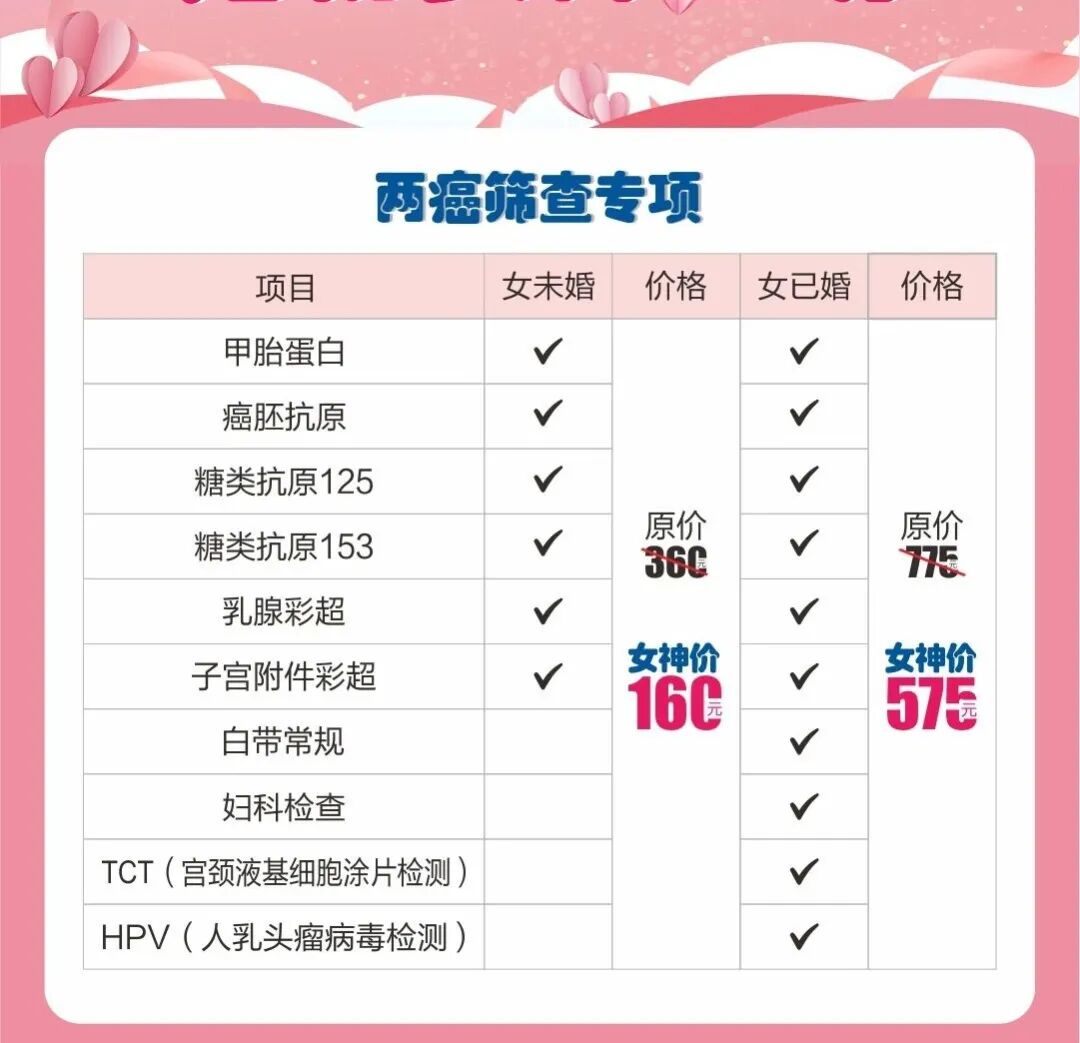 两癌筛查专项 优选套餐 深度套餐参