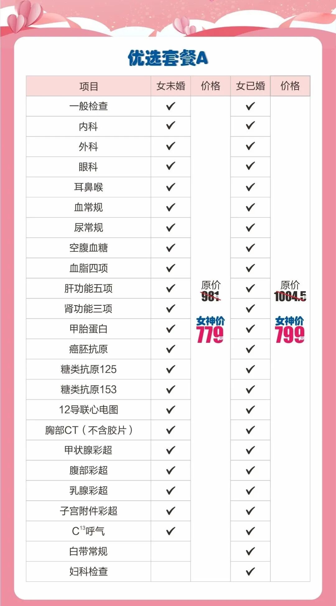 三款女神专属体检套餐