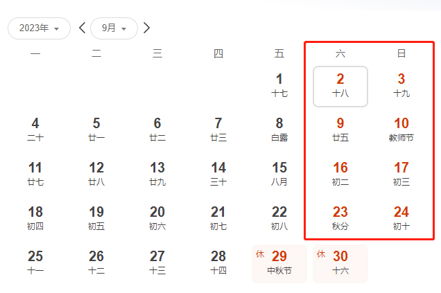 周六、周日(节假日)