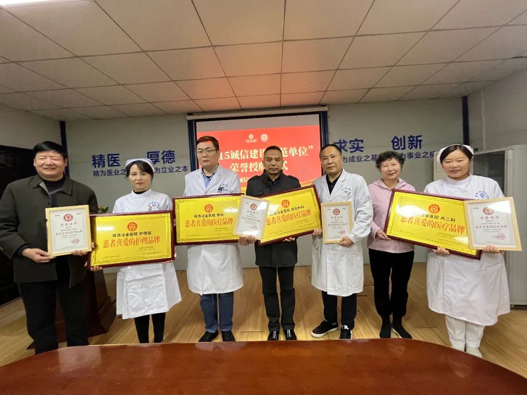 陕西冶金医院骨科、综合外科、内二科荣获“患者喜爱的医疗品牌”,护理部荣获“患者喜爱的护理品牌”荣誉。陕西冶金医院骆小仲、陈建军、田志刚、魏永红、侯美娜、顾必龙、岳玮丽、祁智余、刘晓燕、陈美玲、杨静静、万琦入选“诚信建设突出贡献人物”并授予“诚信建设突出贡献人物”荣誉。