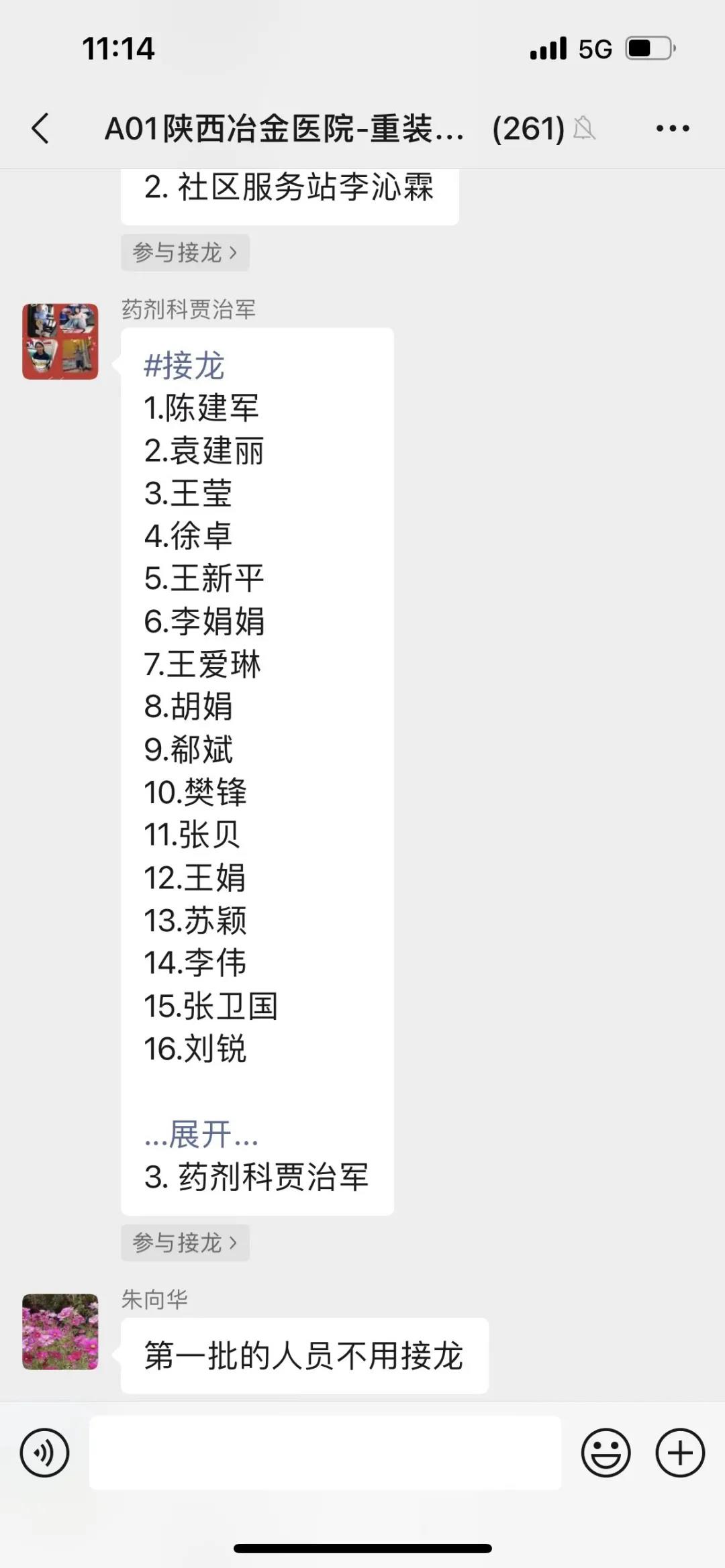 因疫情防控需要陕西冶金医院迅速组建新一批核酸采样应急队,全体医护人员采取自愿报名的方式在群内报名,不到三十分钟时间科室熟悉核酸检测的医务人员就报名90余人。
