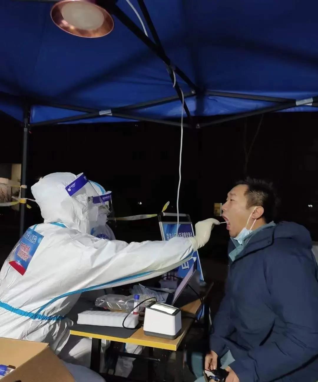 陕西冶金医院“大白”们,不眠不休,通宵奋战在核酸采样一线。他们分批先后前往田家湾、司法小区、建工路东西路口、铁道技师学院、砖厂办公楼、凯森盛世等地连夜开展全员核酸采样工作。