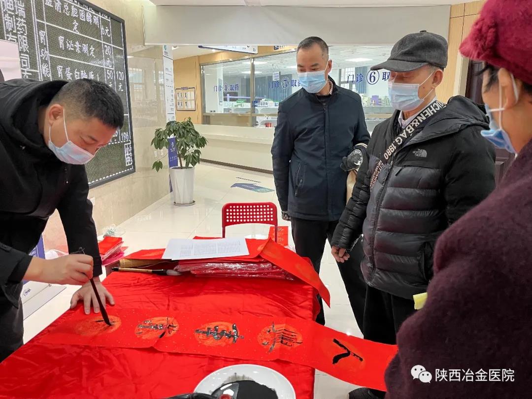日前,陕西冶金医院特别邀请青年书法家、陕西书画研究院副院长孙强先生在医院一楼大厅举行“迎新春·送春联”活动,为社区居民书写春联,让大家在翰墨飘香中提前感受到浓浓的年味。