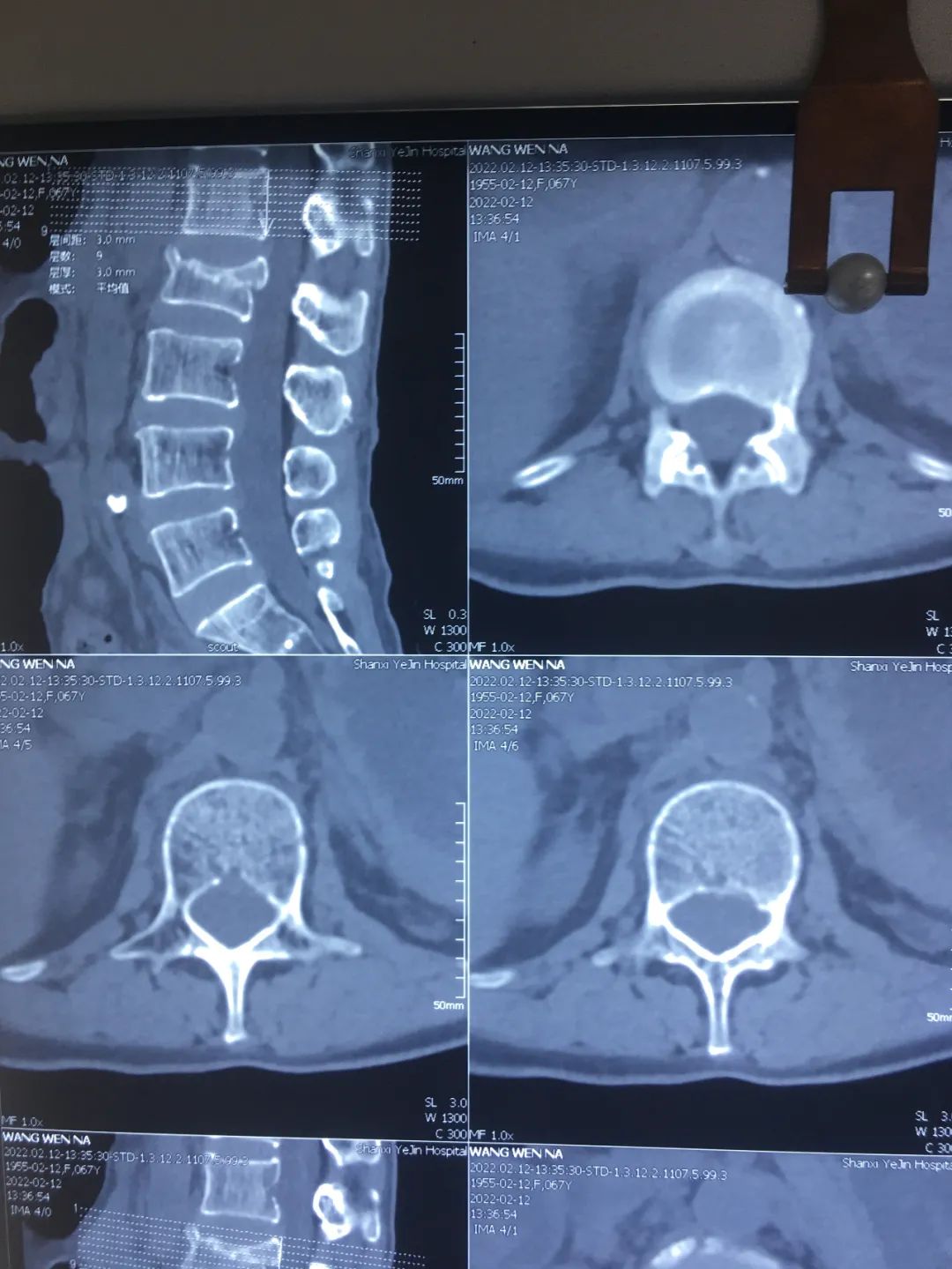 2月12日,家人将她送到陕西冶金医院就诊。医生完善相关检查,拍片提示:腰2椎体新近压缩性骨折,遂收住骨科。