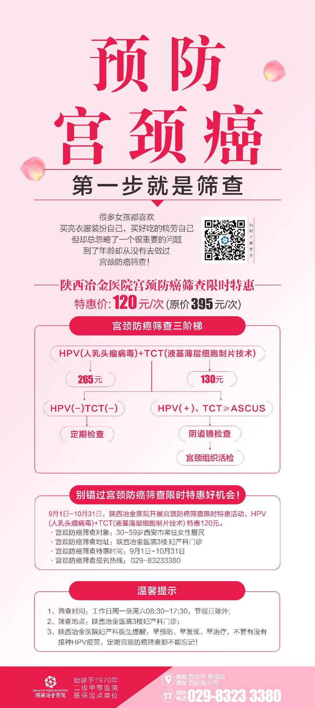 宫颈防癌筛查报名热线 029-83233380