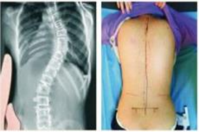 说着安主任就开始认真仔细地给患者进行查体,现症见:脊柱C型改变,左肩高于右肩,左背高于右背;X光片显示:T3-T3左凸右弯17度,诊断为“青少年特发性脊柱侧弯”收入我科进行治疗。
