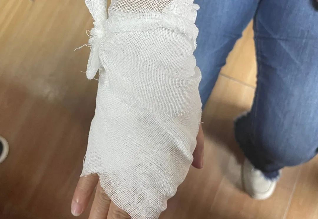 2、充分暴露伤口,在暴露伤口时,如衣服已粘在伤口上,不要强行撕下,必要时可将伤口周围衣服剪开,然后包扎。