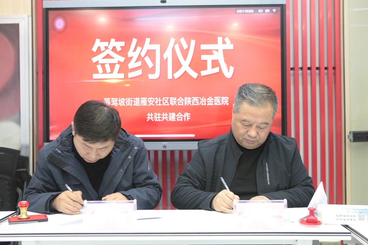近日,陕西冶金医院与等驾坡街雁安社区“共驻共建”正式签约。双方就如何更好地满足社区百姓的就医需求及如何进一步将优质医疗资源输送给社区居民进行了深入交流,并提出了具体想法和要求。