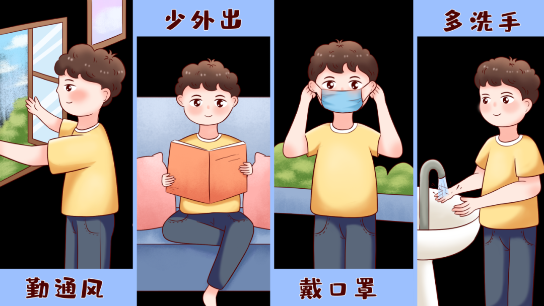 1、做好个人防护:日常注意保持手卫生和咳嗽礼仪,尽量避免去人群聚集场所;