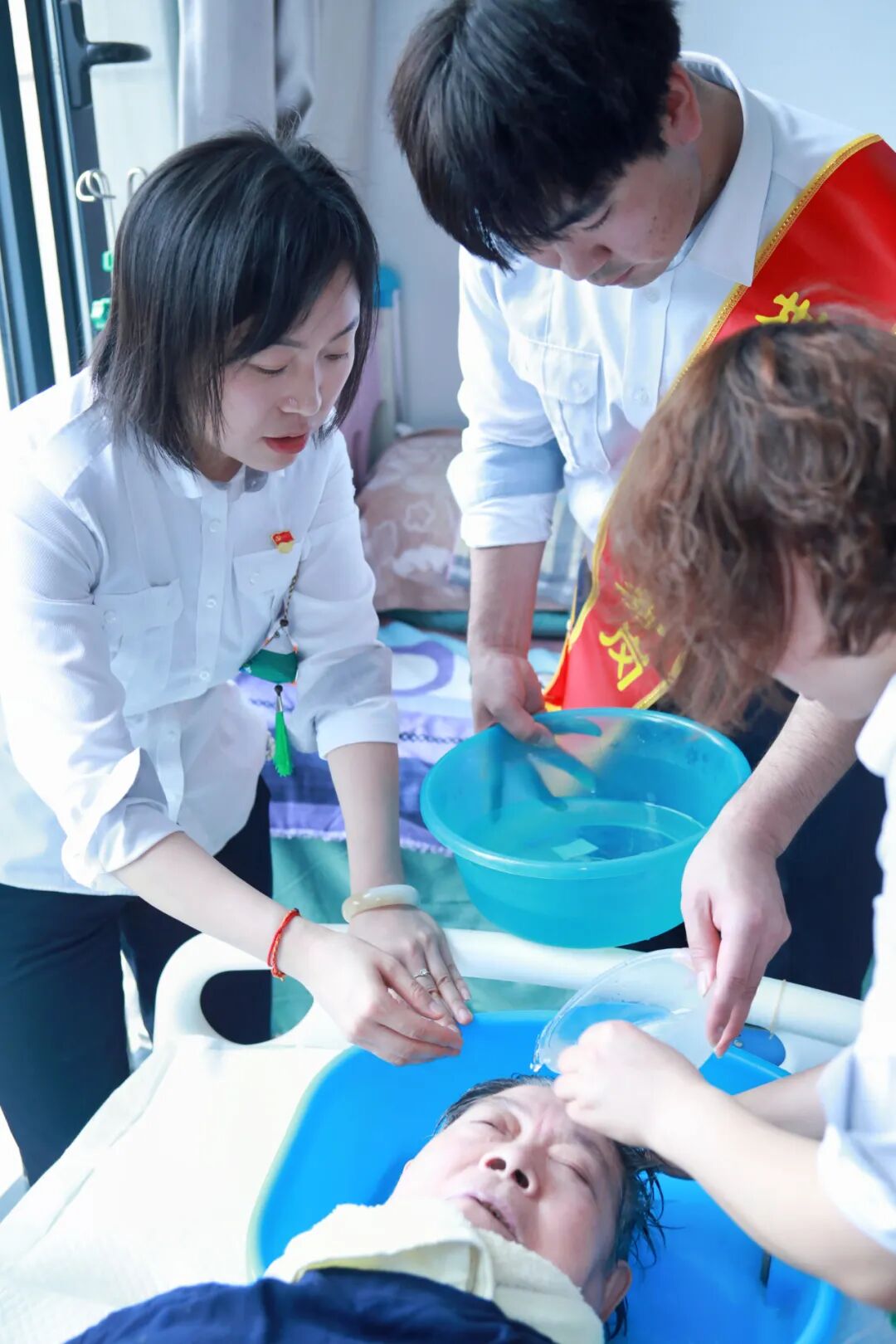 上午9时,志愿者们带着满满的慰问品来到养老院。他们各自分工,有的忙着老人读报、有的给讲故事,有的帮助老人打扫房间,有的给老人洗头剪指甲,这让安静的养老院顿时充满了热闹的节日氛围。在服务老人的同时,志愿者们还为养老院送去了文艺节目、互动游戏等“小心意”。