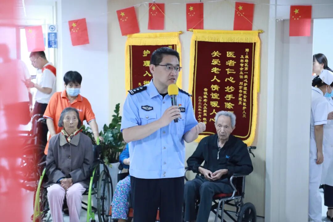 期间,市公安局地铁分局航天大道站派出所、长乐公园站派出所的志愿者还向老人们讲解了针对老年诈骗的一些常用手段,提醒老人们提高反诈意识、增强警觉。志愿者们的到来,让西安市雁塔区第一爱心护理院的老人们感到无比开心。关爱老人的路上。有你我,有我们。