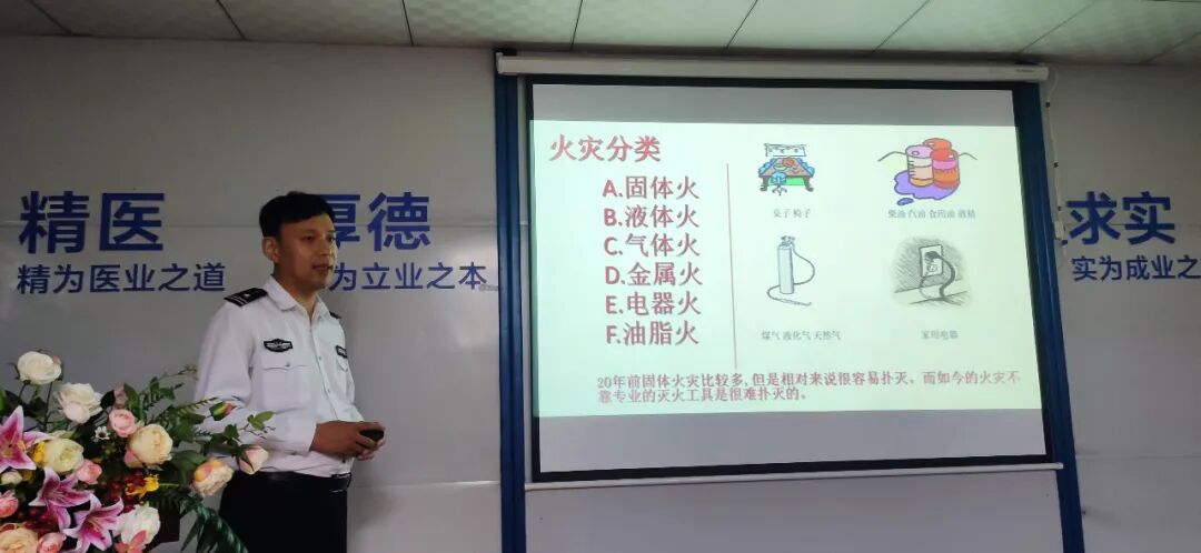通过大量典型事例、用通俗易通的语言、深入浅出地为医务人员讲述了火灾的发生、发展和后果,并针对医院人员流动性大、自防自救能力较弱等特点,以现场互动方式,从日常防火常识和发生火灾如何及时正确报警等消防基础知识进行了深入细致的讲解。使全院职工掌握了正确使用灭火器、紧急扑救火灾及基本逃生方法,增强了各科室消防安全防范及应急救护综合能力,提高了职工消防安全防范意识,筑牢了“安全第一”的思想防线。