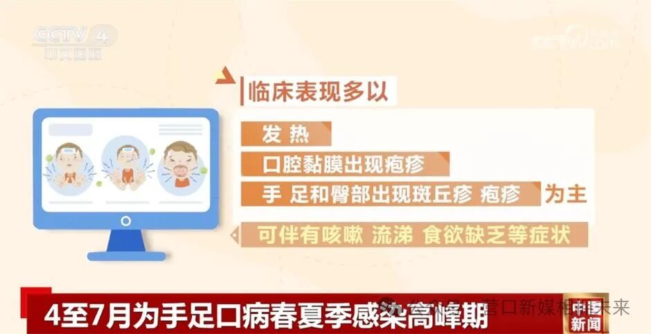 手足口病是由多种肠道病毒引起的5岁及以下儿童常见急性传染病,全年均可发病,4-7月为春夏季高峰,9-11月为秋季高峰。手足口病从感染到出现症状约为2-10天,平均3-5天。