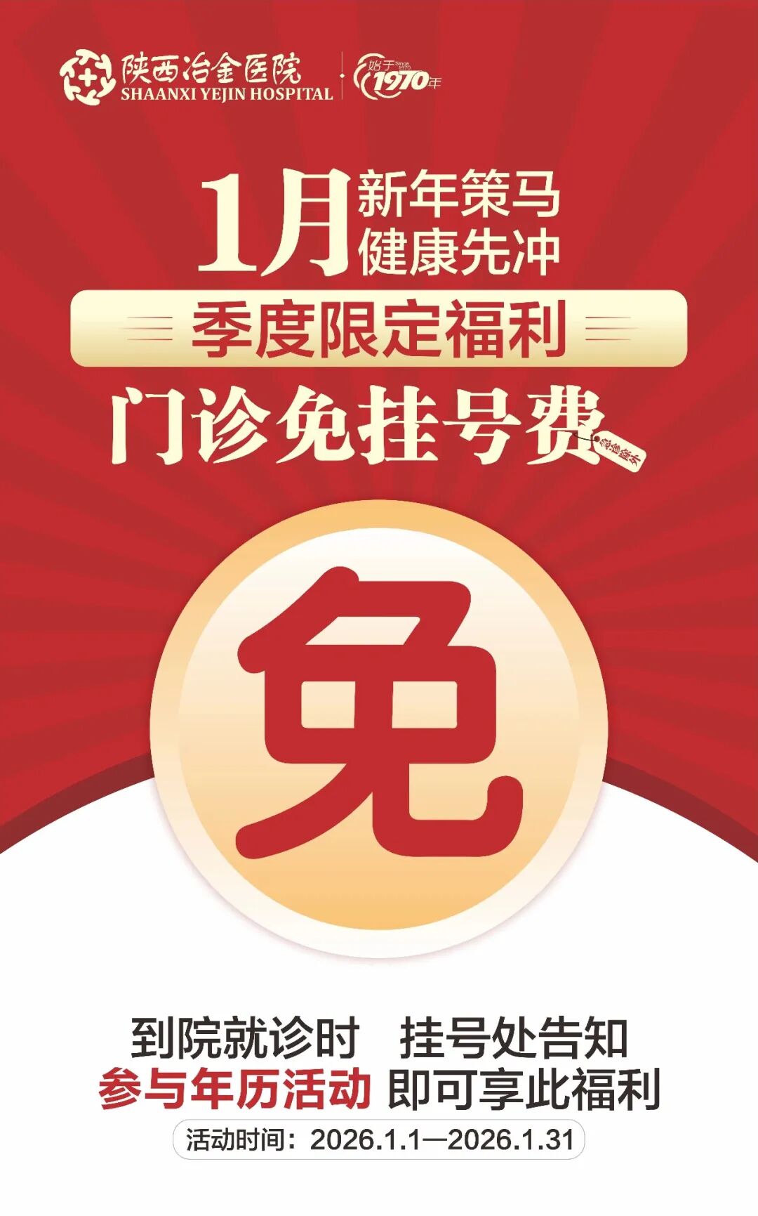 ⏰ 活动方式:凡到院就诊患者,在挂号处告知“参与年历活动”即可享门诊免挂号费福利(温馨提示:急诊除外)。