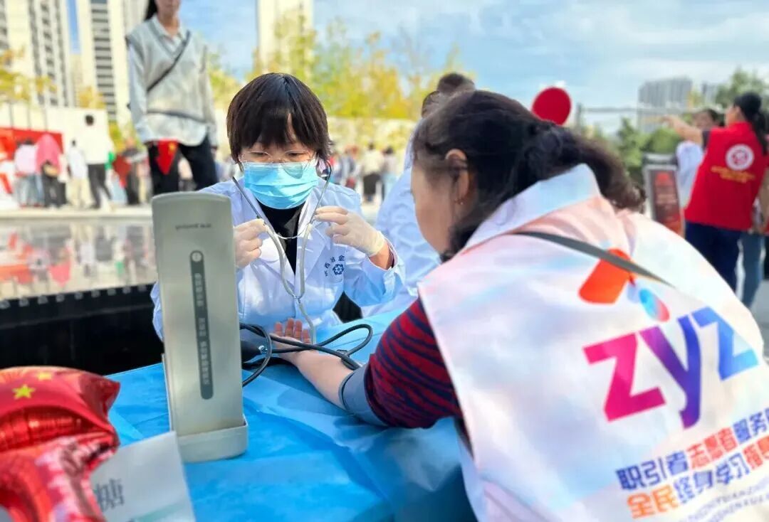 活动现场还同步开展公益义诊活动。为提升服务效率与体验,陕西冶金医院医疗服务队提前布置义诊区域,科学划分血糖检测、血压测量、健康咨询等专属专区。