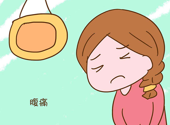手捂腹部、面色苍白