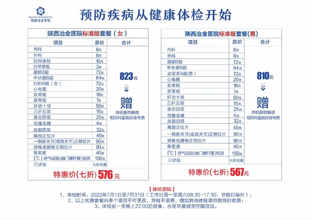 @市民朋友,陕西冶金医院7月体检活动开始了(内含福利)