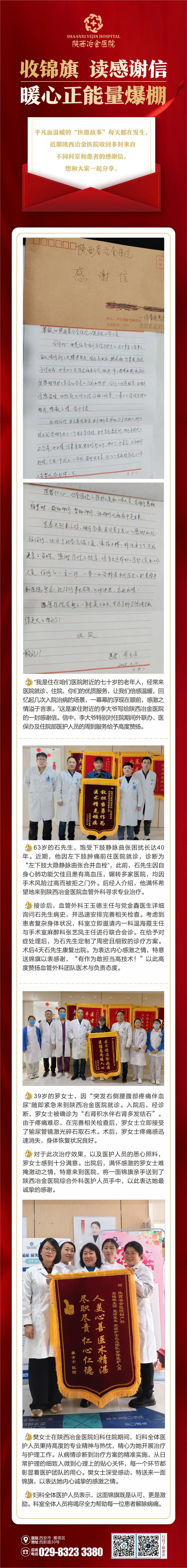 医患是生命健康共同体。在陕西冶金医院,每一面锦旗、每一封感谢信背后传递的不仅是患者的感激,更是对医护人员的认可。多年来,医院始终“急患者之所急,想患者之所想,排患者之所忧,解患者之所愁”,将一件件事办到患者心窝上,得到患者及家属的高度认可与好评。