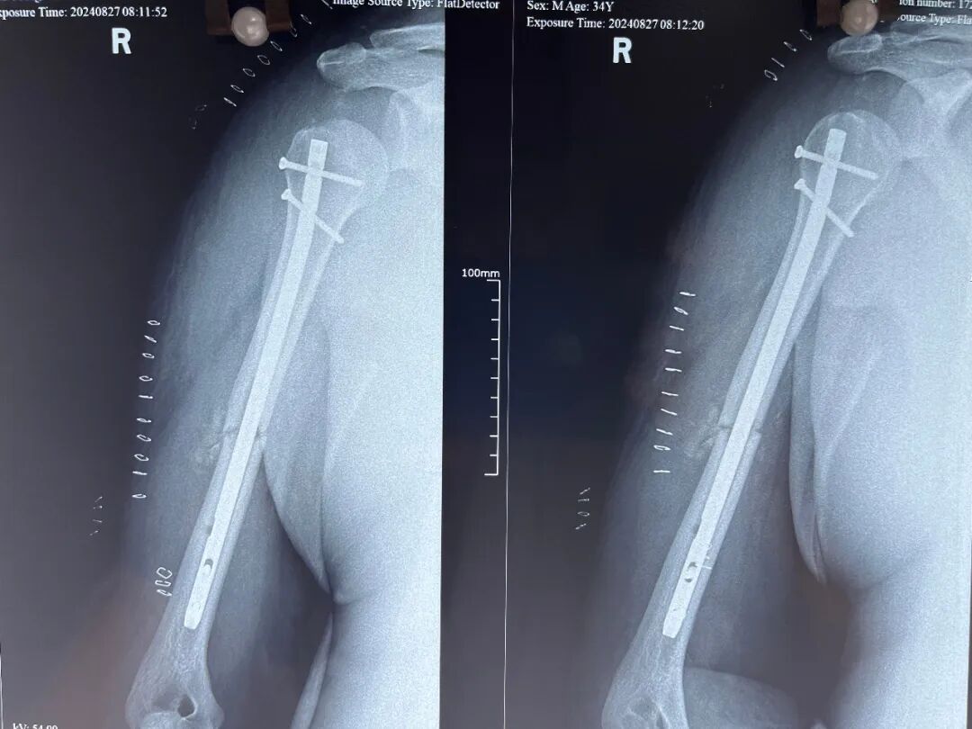 △ 右侧肱骨干骨折髓内钉固定术术后