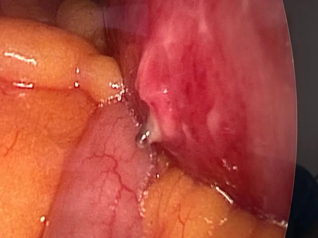 随即完善相关检查,并与王阿姨及其家属充分沟通。在周密的术前讨论和手术准备后,陕西冶金医院综合外科团队为患者全麻下行“腹腔镜下探查术中转小肠部分切除”。在手术麻醉科配合下,手术十分顺利。术中经探查发现,在患者肠壁上,一枚尖尖的枣核正嵌顿在肠子上,系膜侧有一小穿孔。罪魁祸首找到了,立即转小肠部分切除术将枣核取出。