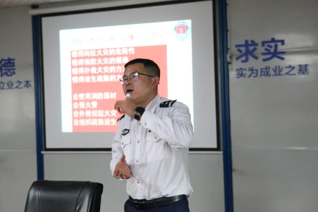 此次培训,李教官首先对消防法律、法规进行了简要介绍。接着通过案例分析,对近年来火灾事故进行了深入剖析,提醒大家时刻保持警惕,增强自我保护意识。并从火灾防范、自救方法、灭火器材的使用方法、应急疏散逃生等方面进行了现场演示和培训,着重强调了“检查消防火灾隐患能力、组织扑救初起火灾能力、组织人员疏散逃生能力、消防宣传教育培训能力”等消防安全四个能力。