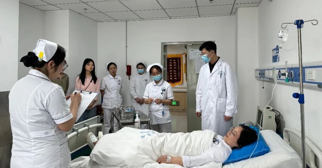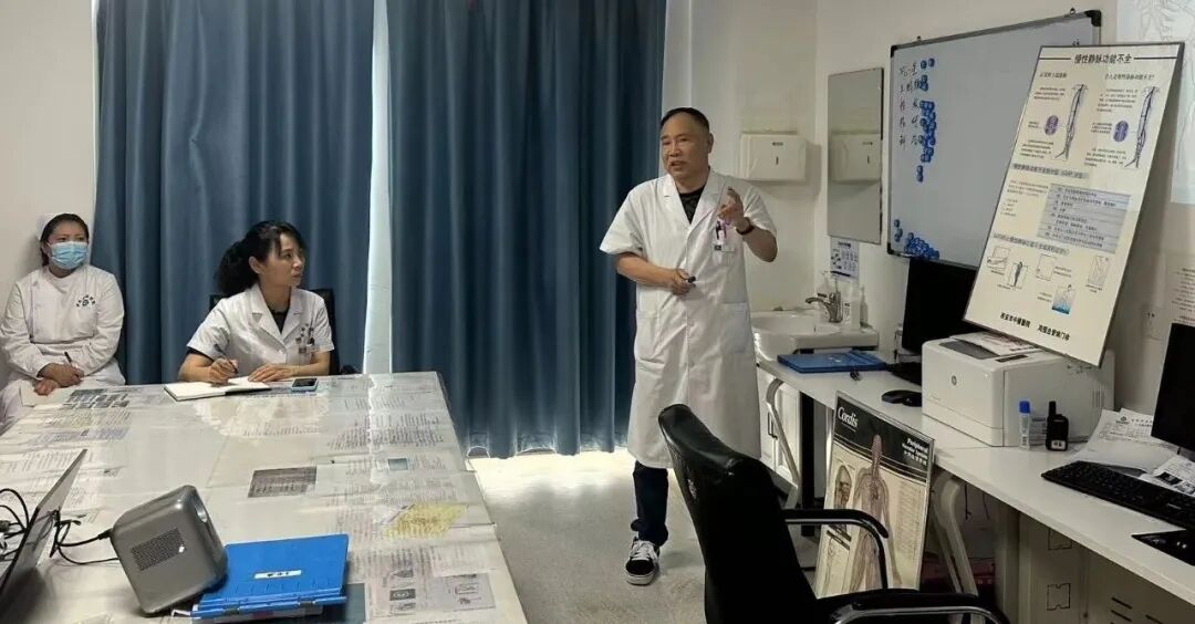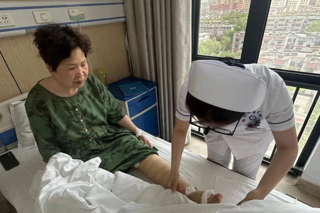 4月24周三,综合外科进行一例大隐静脉高位结扎剥脱术后的护理查房。
