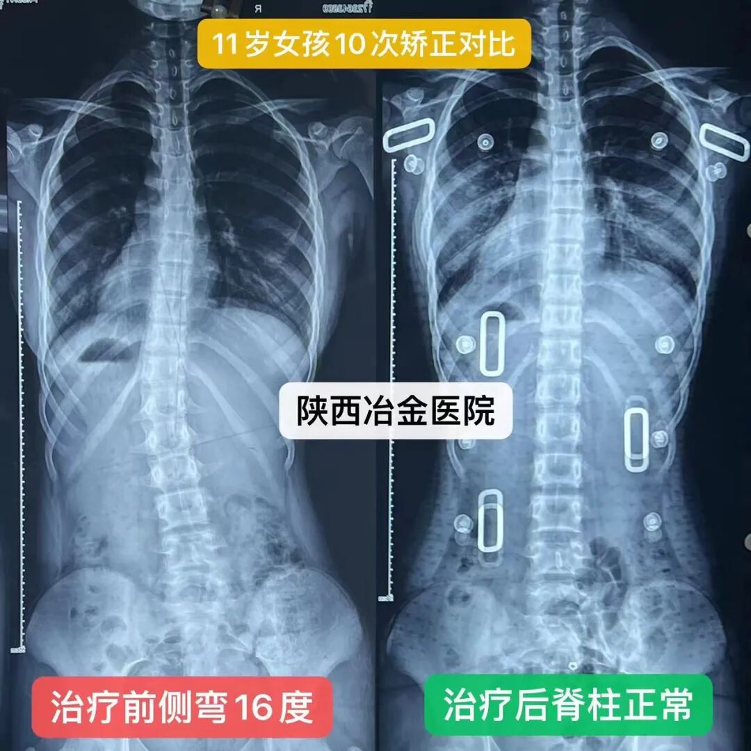 西安女孩11岁洗澡时发现腰部肌肉不平,身体有点不正,拍片确诊脊柱侧弯16度,辗转几大医院说法不一,有让戴矫形支具控制,有让回家吊单杠锻炼,有让定期观察如果加重了再手术,父母特别焦虑,多方打听后来到陕西冶金医院脊柱侧弯矫形科。