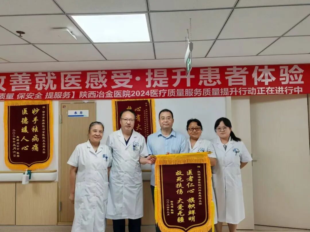 信中她写到,8月21日来陕西冶金医院内二科住院,9月3日出院。这已经是她第三次到内二科治疗住院。在这三次的治疗中,给她留下了深刻的印象:病人至上,服务至上。每次住院时都是“希望而至”,“满意而归”。不仅治愈了她的疾病,还让她感受到了医生对患者的关爱和重视,体会到了医者仁心。一面锦旗,一份认可。近日,陕西冶金医院康复医学科迎来了温馨而感人的一幕。一面面饱含深情的锦旗被悄然送至科室。
