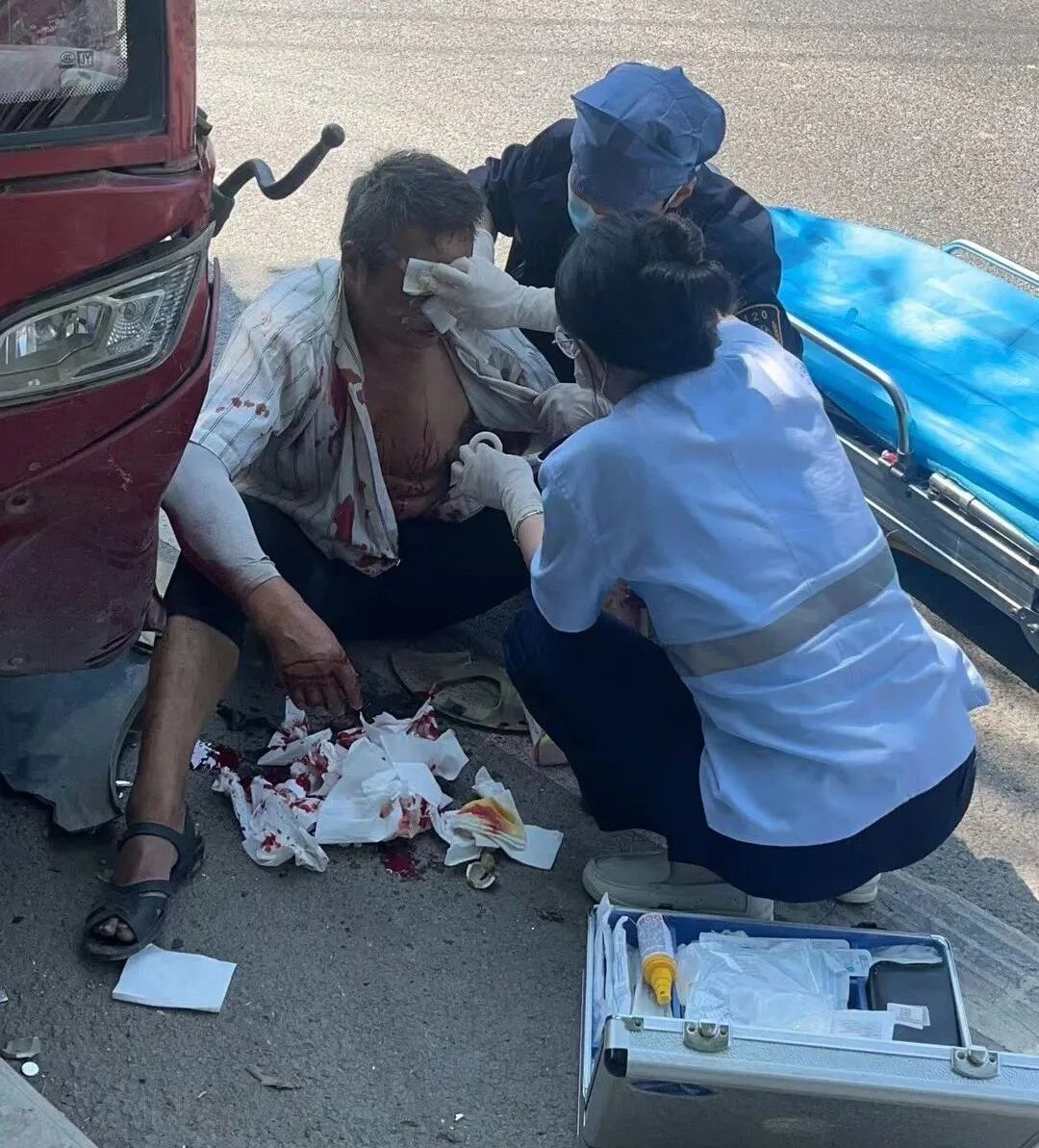 “长鸣路马腾空地铁口向南3公里处发生车祸,伤者一名男性,受伤严重”。车祸后,陕西冶金医院急救站的救护车在最短时间内伤者紧急送至陕西冶金医院救治。