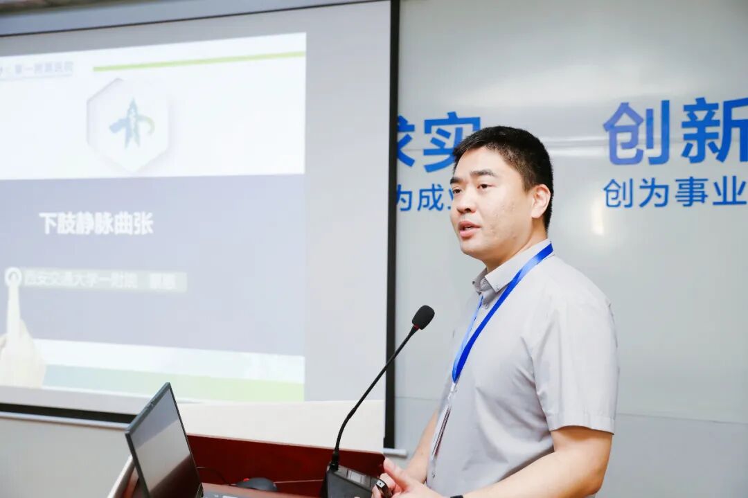 授牌仪式结束后,即进入会议重头戏——“下肢静脉疾病专题学术研讨”其中,空军军医大学西京医院甲乳血管外科袁时芳教授做了《肌静脉血栓的诊断与防治》讲座;西安交通大学第一附属医院血管外科创始人、陕西冶金医院特聘专家祁光裕教授做了《下肢静脉畸形表现(KTS)》成果分享;空军军医大学西京医院甲乳血管外科王辉教授做了《中国DVT指南和临床实践》分享;西安交通大学第一附属医院血管外科蔡惠教授做了《下肢静脉曲张诊治》讲座;陕西冶金医院血管外科王玉徳教授分享了《下肢静脉顺行造影及溶栓》;陕西冶金医院血管外科党金鑫对《下肢静脉曲张局麻下微创手术演示》进行了分享。